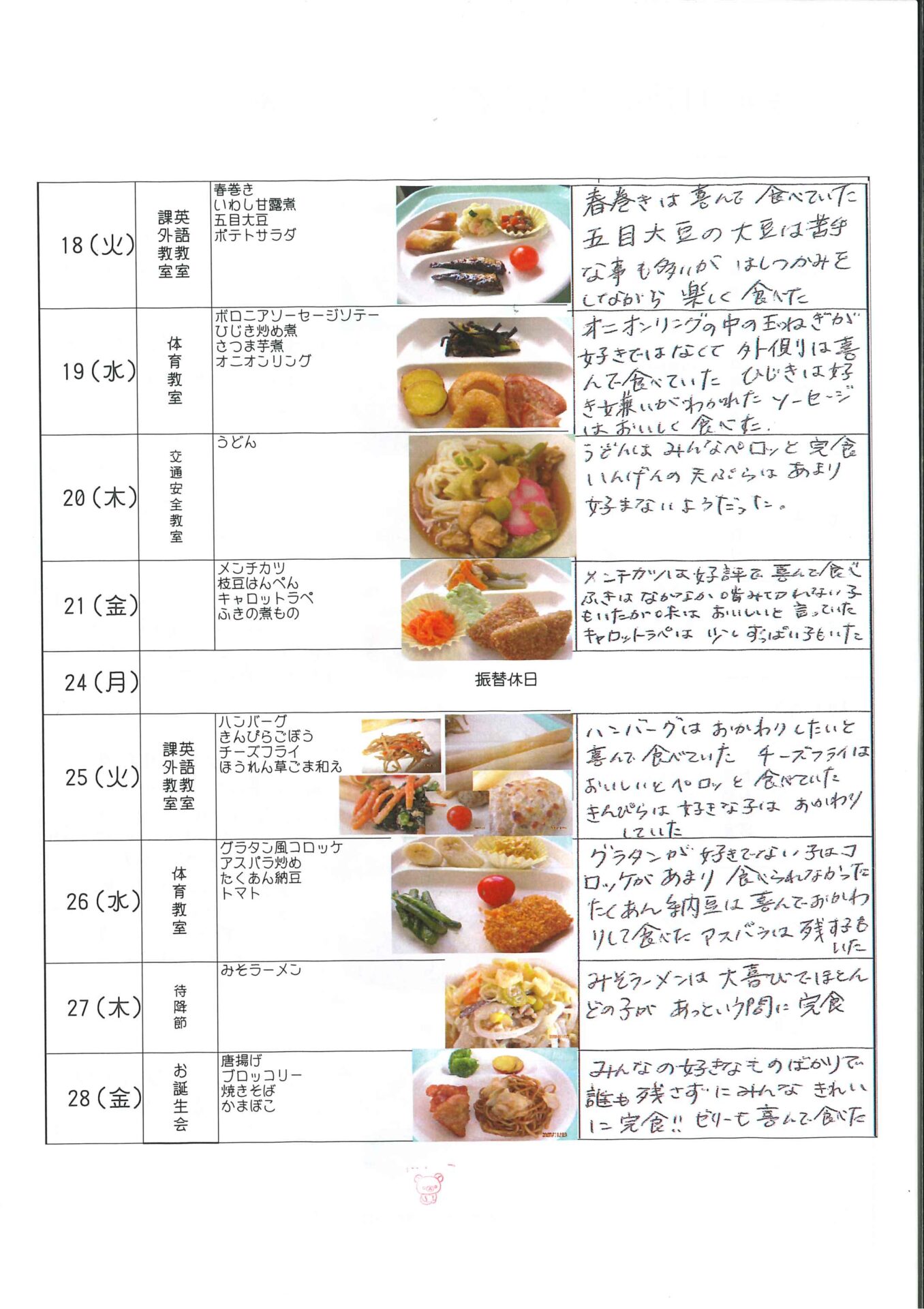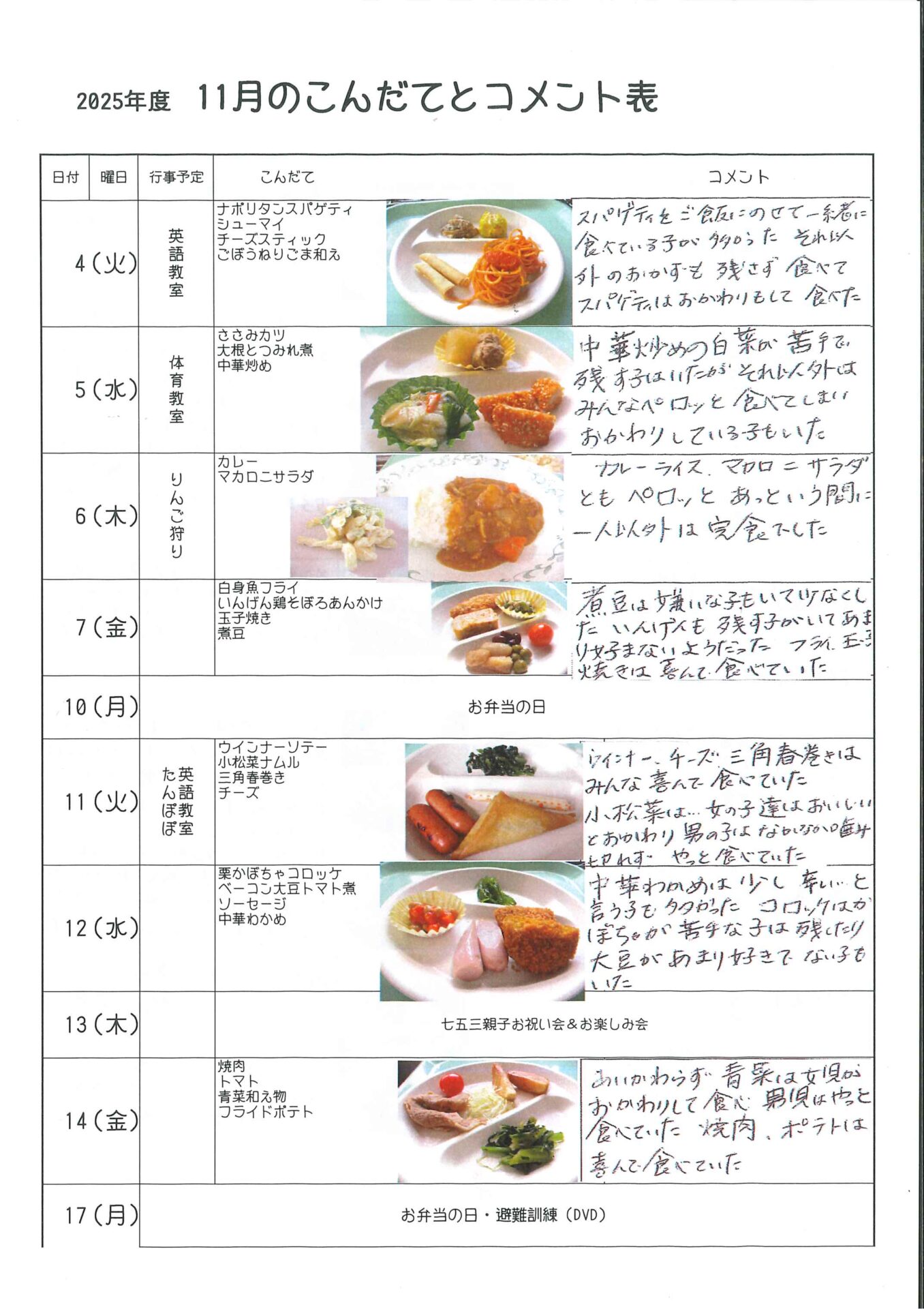 11月給食の様子