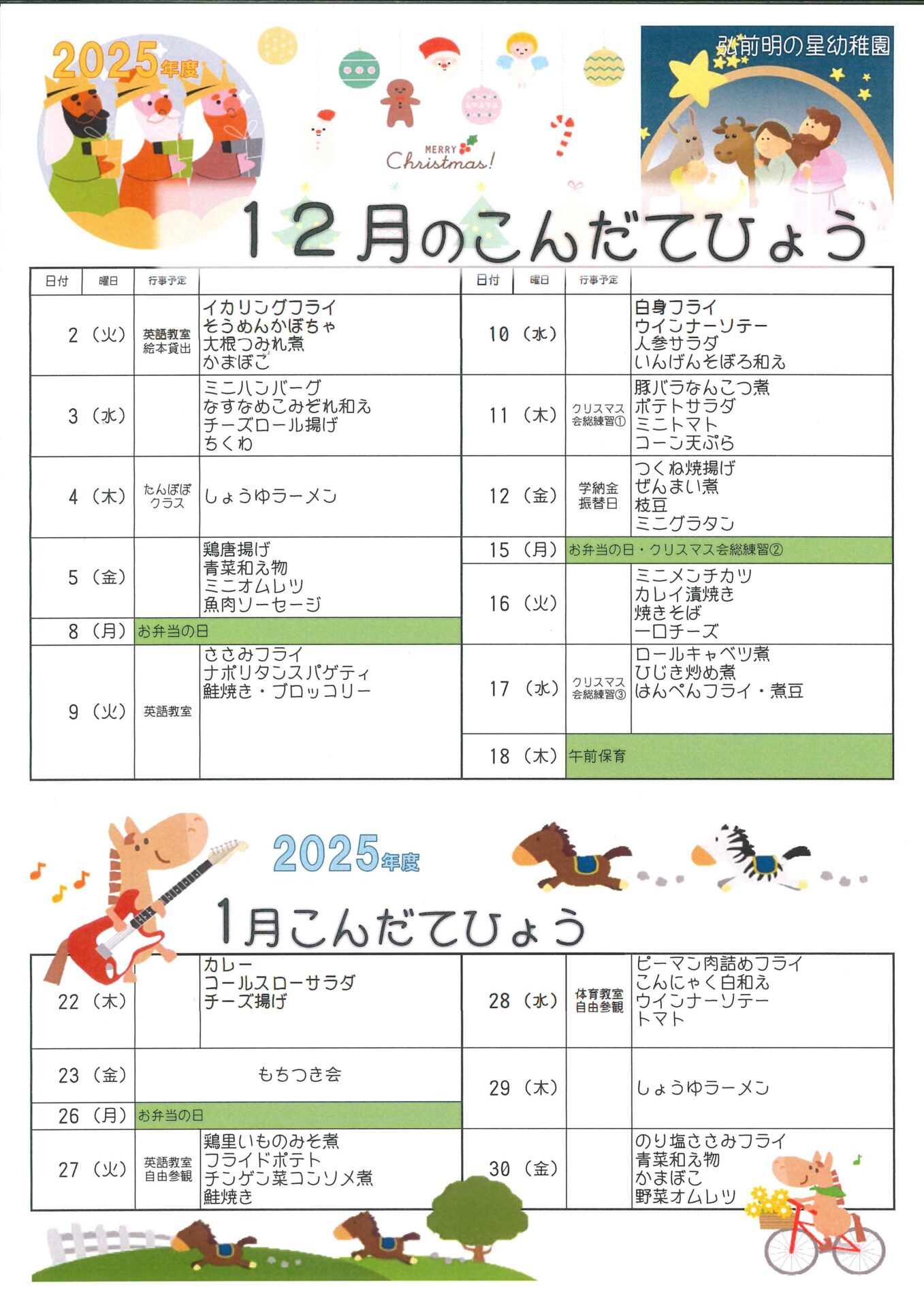 12月と1月のこんだて表